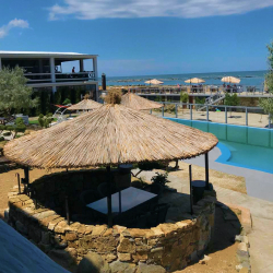 Чудесная гостиница, номера шикарные, горячая вода без перебоев, бассейн регулярно чистится и в номерах уборка безукоризненная. Отлично подойдёт для отдыха с детьми, но и нам вдвоём с супругом было очень уютно и весело вдвоём. При гостинице прекрасный ресторан, есть доставка блюд в номер. Территория благоухает чистотой и аккуратность. По территории гуляют павлины, радуясь гостей красотой и грацией. Настоящий люкс со всех сторон и вид на море из окон номера. А еще балкончик с качелями и столиком для утреннего кофе. Этот отдых прекрасен с первой минуты. По вечерам играет музыка, но после полуночи тишина, можно спокойно выспаться. Есть лежаки, качели и беседки у бассейна и до моря минуты две пешком, если не торопиться.